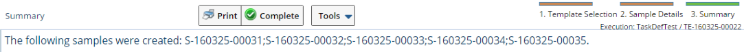 "Summary" is an HTMLStep that shows the Samples created.