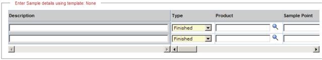 | Product | Product to be associated with the Samples. In the Product description, see the note about Specification Versions. |